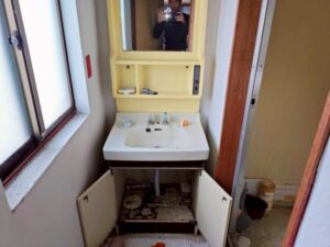堺市美原区にて水漏れ修理〈洗面台からの水漏れ〉の施工前写真