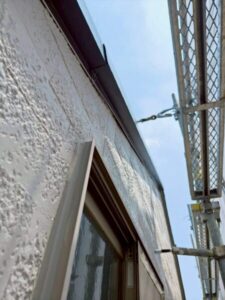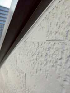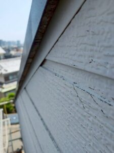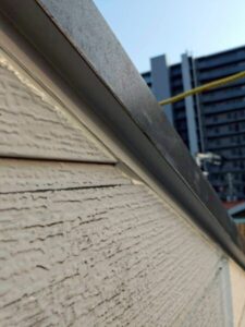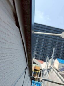 屋根の端、屋根裏の部分「破風板」の板金と外壁に隙間があるのが分かります。