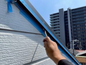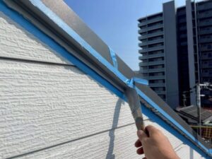 すると、おっしゃっていた場所からの漏れが確認できましたので、破風板の下部分の隙間をシールで埋めさせていただきました。