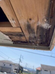 まずは原因を特定するため、部分的に軒天を捲って内部の状態を確認しました。
