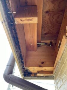 この漏水が長期間続いていた影響で、内部の木部は腐食しており、下地としての強度も低下している状態でした。
